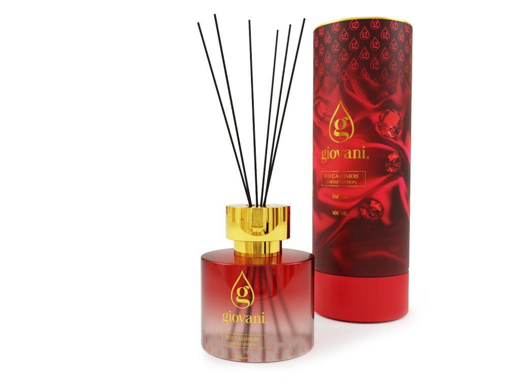 Sensuality, depth and comforting elegance in a sophisticated composition. Giovani® RED CASHMERE Reed Diffuser opens with sweet notes of cotton candy, cherry, strawberry and raspberry. The heart unfolds with a delicate blend of violet, lily of the valley and jasmine, subtly enhanced by anise for a spicy touch.